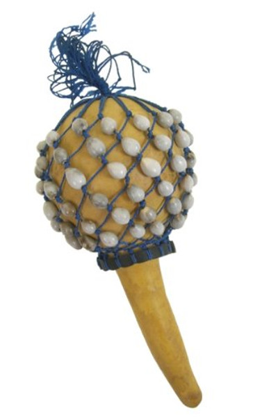 This gourd shaker is traditionally known as the axatse (ah-HA-chay) in Ghana, and is also known more generically as a shekere (SHEH-kuh-ray). Each dry, hollow calabash is hand selected for thickness and proportion, then dressed with a lattice work of Job's Tear Seeds. The axatse can be played like a maraca, by gently tugging on the blue rope ends, by swirling or twisting the seed net, or with more intricate double handed techniques. The axatse differs from the Afro-Cuban shekere in that it is smaller and does not produce a bass note when the top of the gourd is struck. An excellent way to teach rhythm and culture.