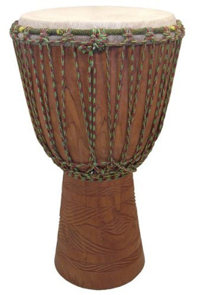 - Excellent sound quality from solid handcarved wood shell and natural West African goat skin.